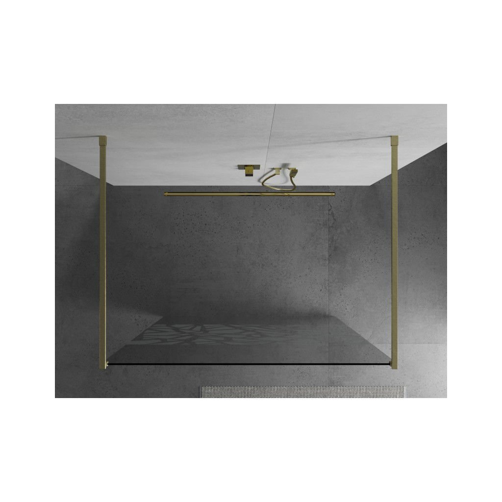 Mexen Kioto, Masa de dus Walk-In 130 x 200 cm, 8 mm sticla transparenta model alb, profil auriu mat, 800-130-002-55-85