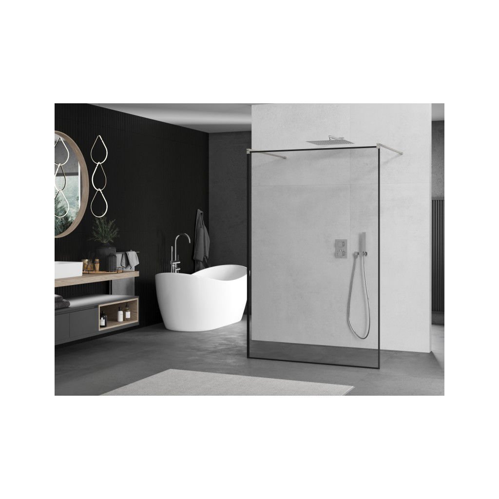 Mexen Kioto, Masa de dus Walk-In 130 x 200 cm, model sticla neagra 8 mm, profil din otel periat, 800-130-002-97-70