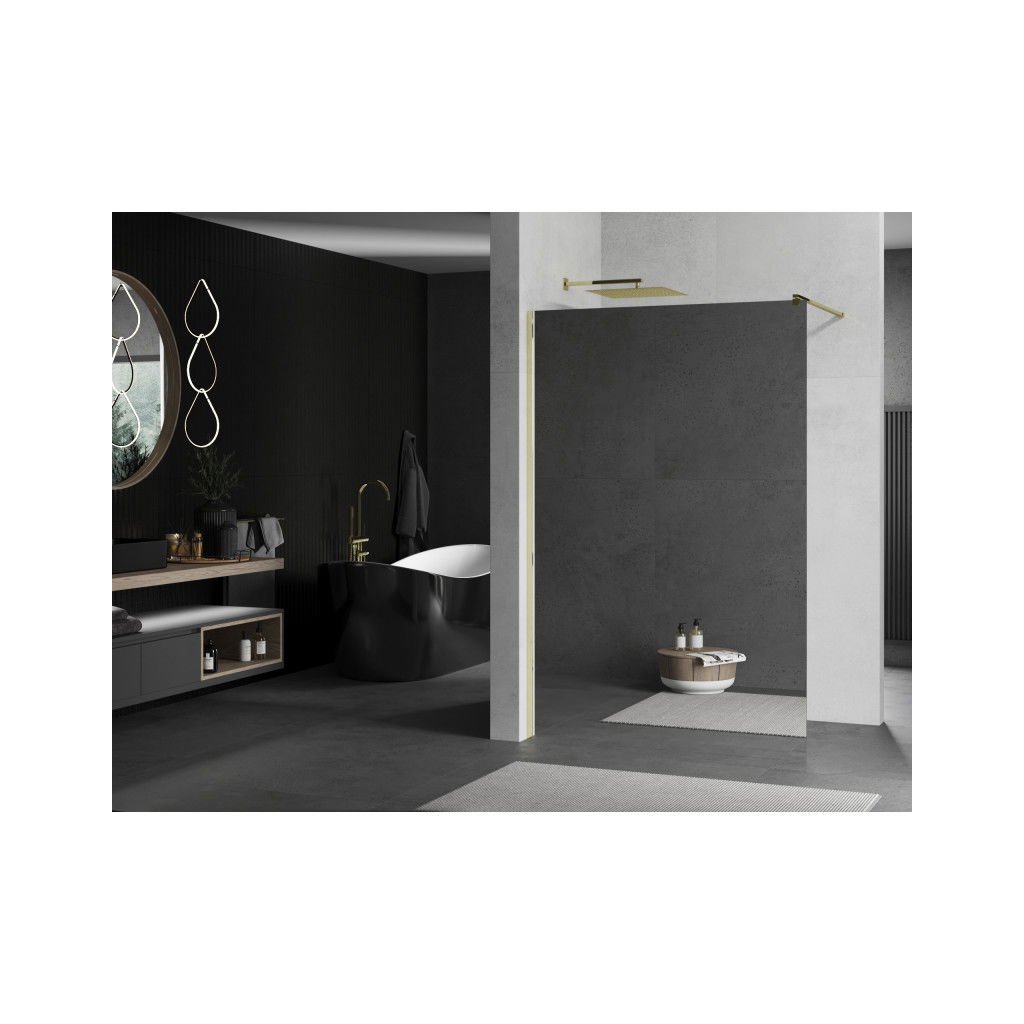 Mexen Kioto, Masa de dus Walk-In 130 x 200 cm, sticla model oglinda de 8 mm, profil auriu lucios, 800-130-101-50-50