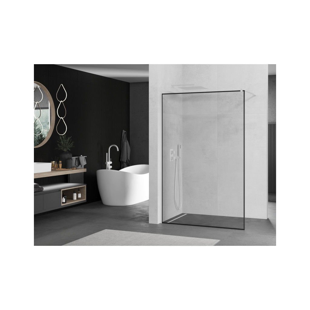 Mexen Kioto, Masa de dus Walk-In 80 x 200 cm, 8 mm sticla transparenta/negru model, profil alb, 800-080-101-20-70