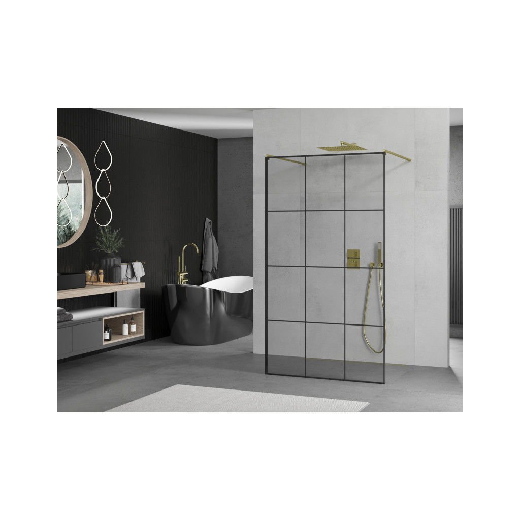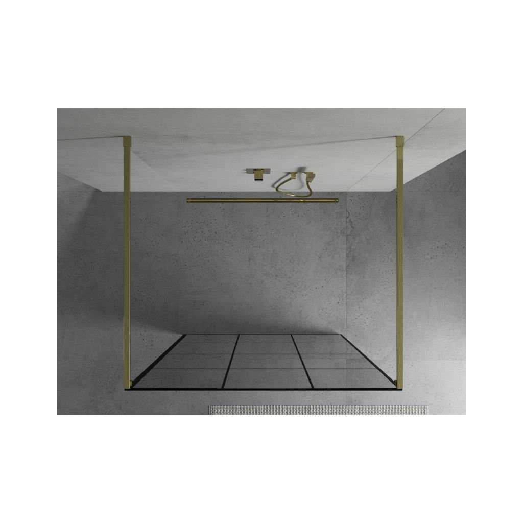 Mexen Kioto, paravan de duș 100 x 200 cm, model sticlă transparentă/negru de 8 mm, 2x distanțier stabilizator auriu, 800-100-002-50-77