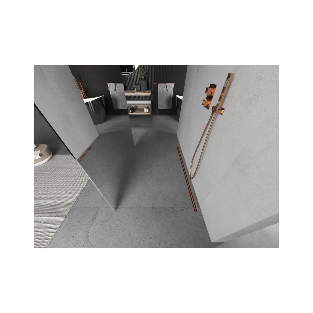 Mexen Kioto, paravan de duș 100 x 200 cm, sticlă de 8 mm cu efect de oglindă, 2x distanțier stabilizator, aur roz, 800-100-002-60-50