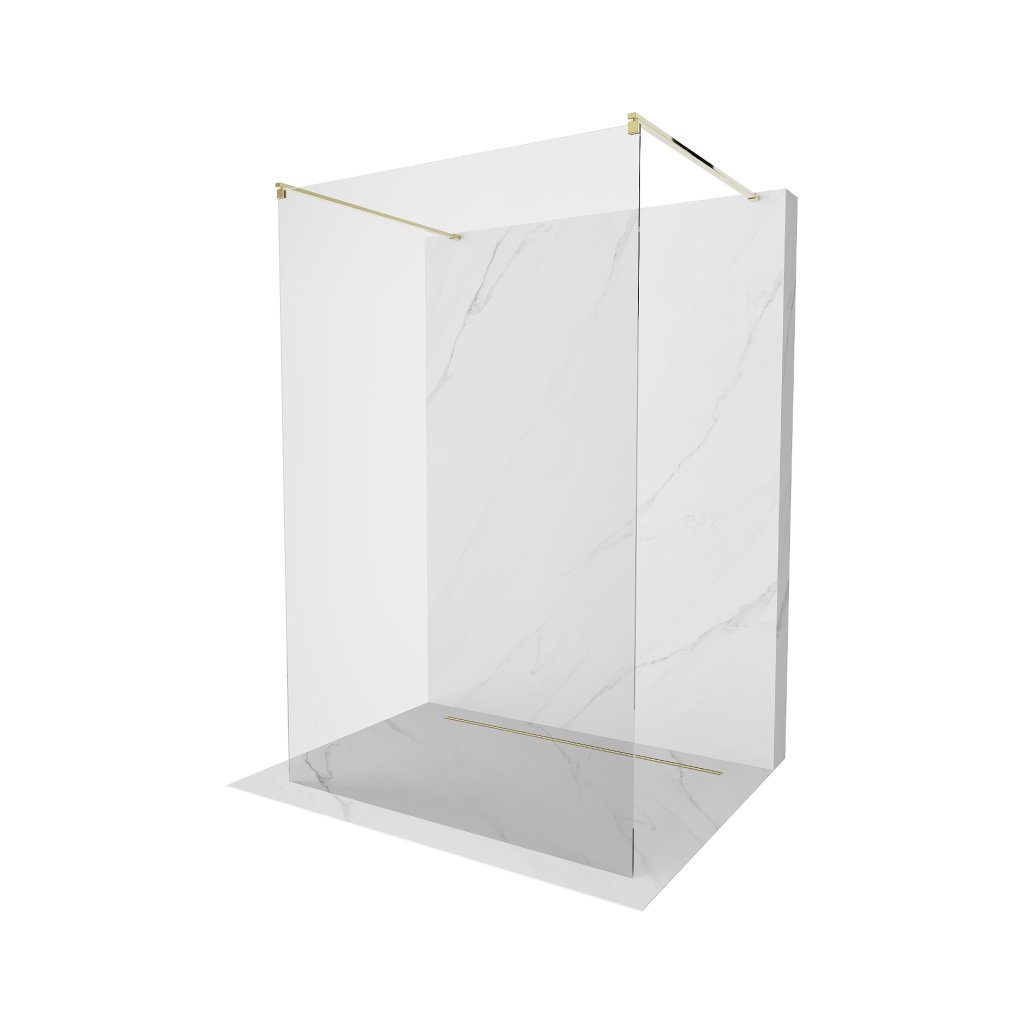 Mexen Kioto, paravan de duș 100 x 200 cm, sticlă transparentă de 8 mm, 2x distanțier stabilizator auriu, 800-100-002-50-00