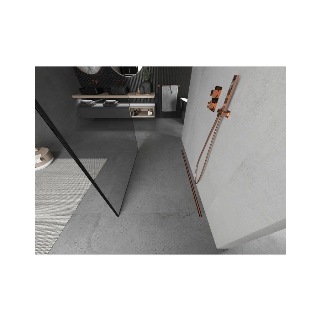 Mexen Kioto, paravan de duș 100 x 200 cm, sticlă transparentă de 8 mm cu cadru negru, 2x distanțier stabilizator auriu, profil auriu roz, 800-100-002-60-70