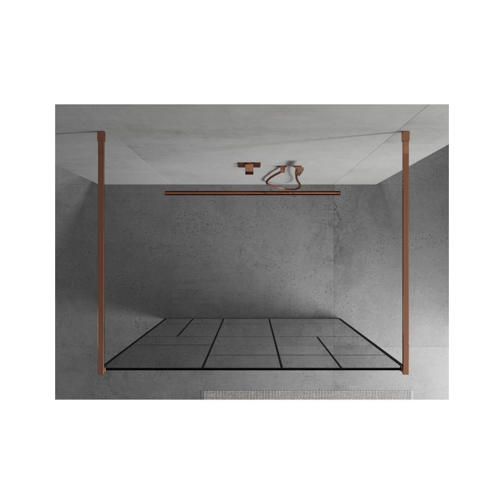 Mexen Kioto, paravan de duș 100 x 200 cm, sticlă transparentă de 8 mm cu model negru, 2x distanțier stabilizator auriu, profil auriu roz, 800-100-002-60-78