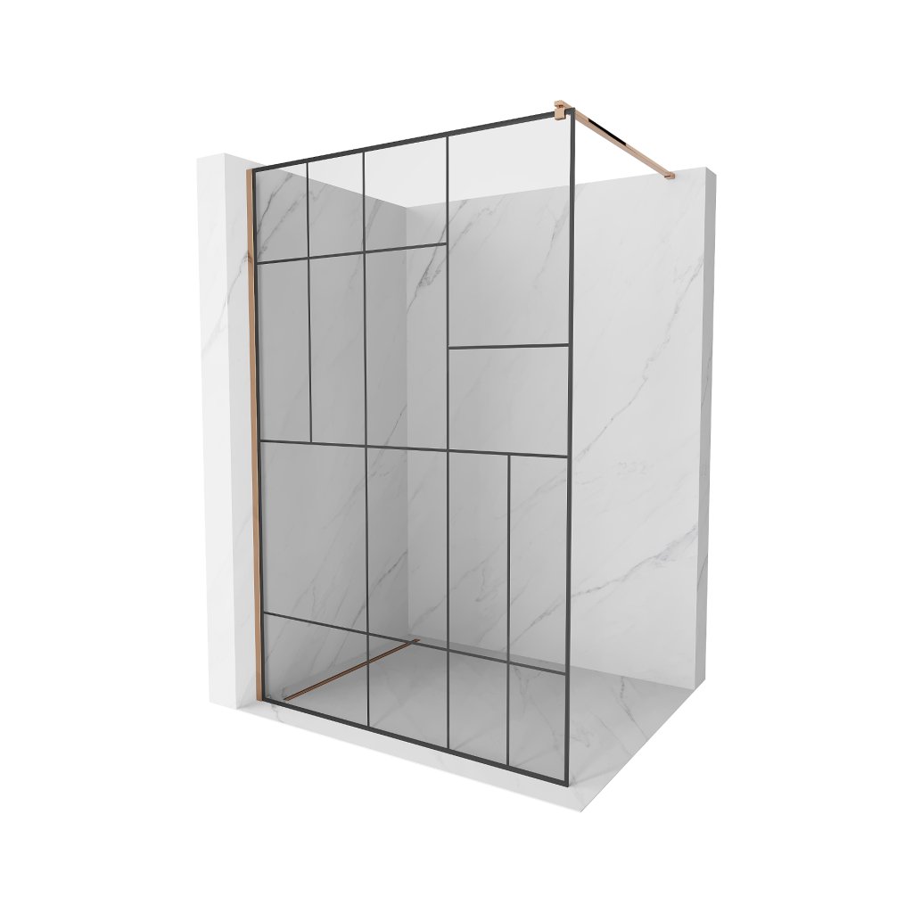 Mexen Kioto, paravan de dus 100x200 cm, sticla transparenta 8 mm cu model negru, profil auriu roz, 800-100-101-60-78