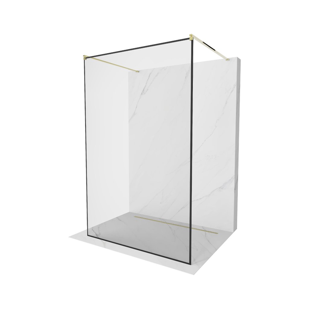 Mexen Kioto, paravan de duș 110 x 200 cm, 8 mm sticlă transparentă/negru model, auriu- 800-110-002-50-70