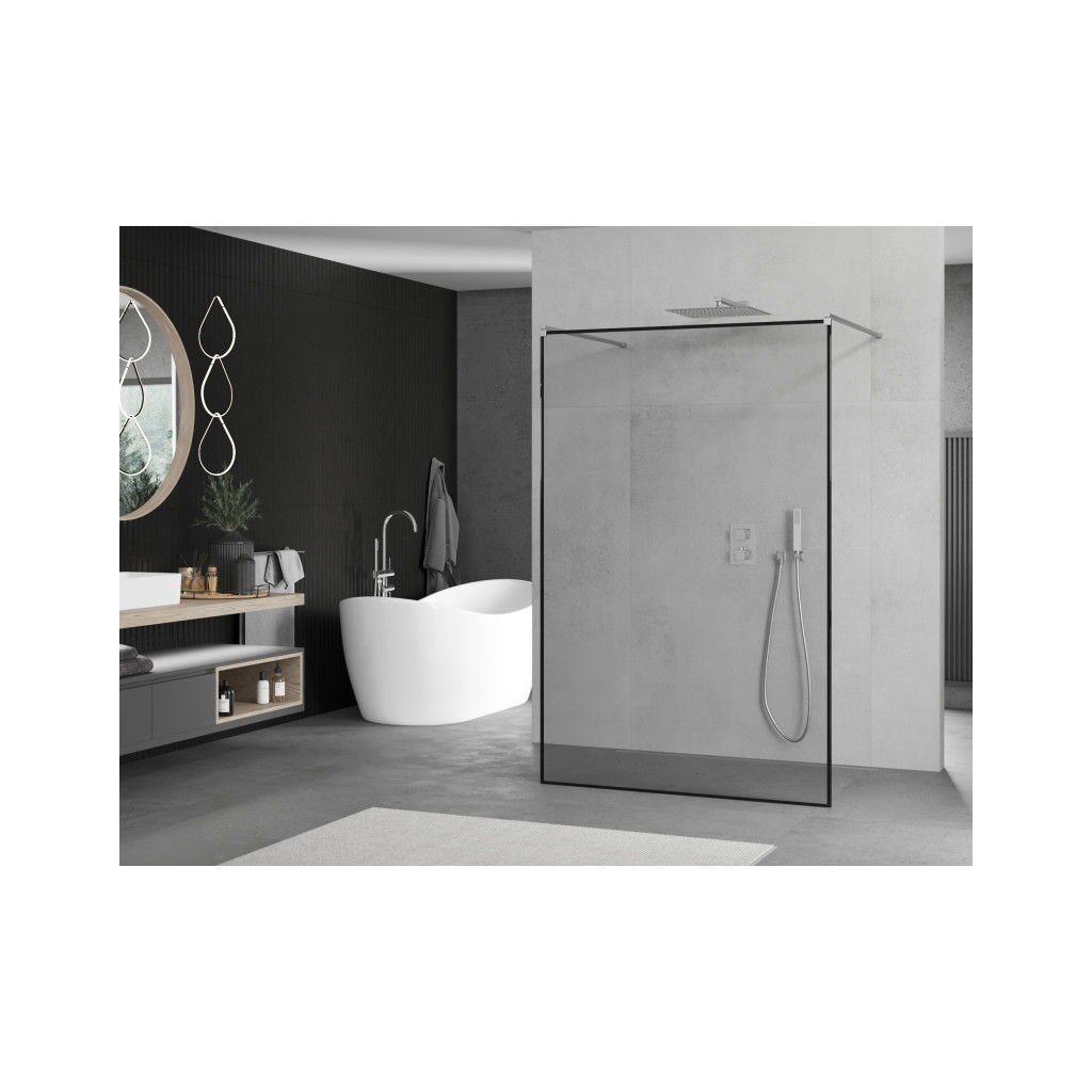 Mexen Kioto, paravan de duș 110 x 200 cm, model sticlă transparentă/negru de 8 mm, 2x distanțiere de stabilizare crom, 800-110-002-01-70