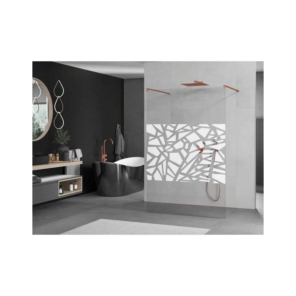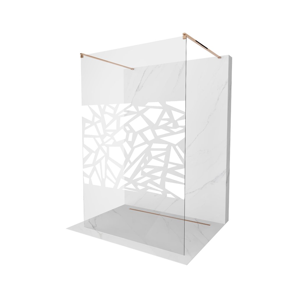 Mexen Kioto, paravan de duș 110 x 200 cm, sticlă transparentă de 8 mm cu model alb, 2x distanțier stabilizator auriu, profil auriu roz, 800-110-002-60-85