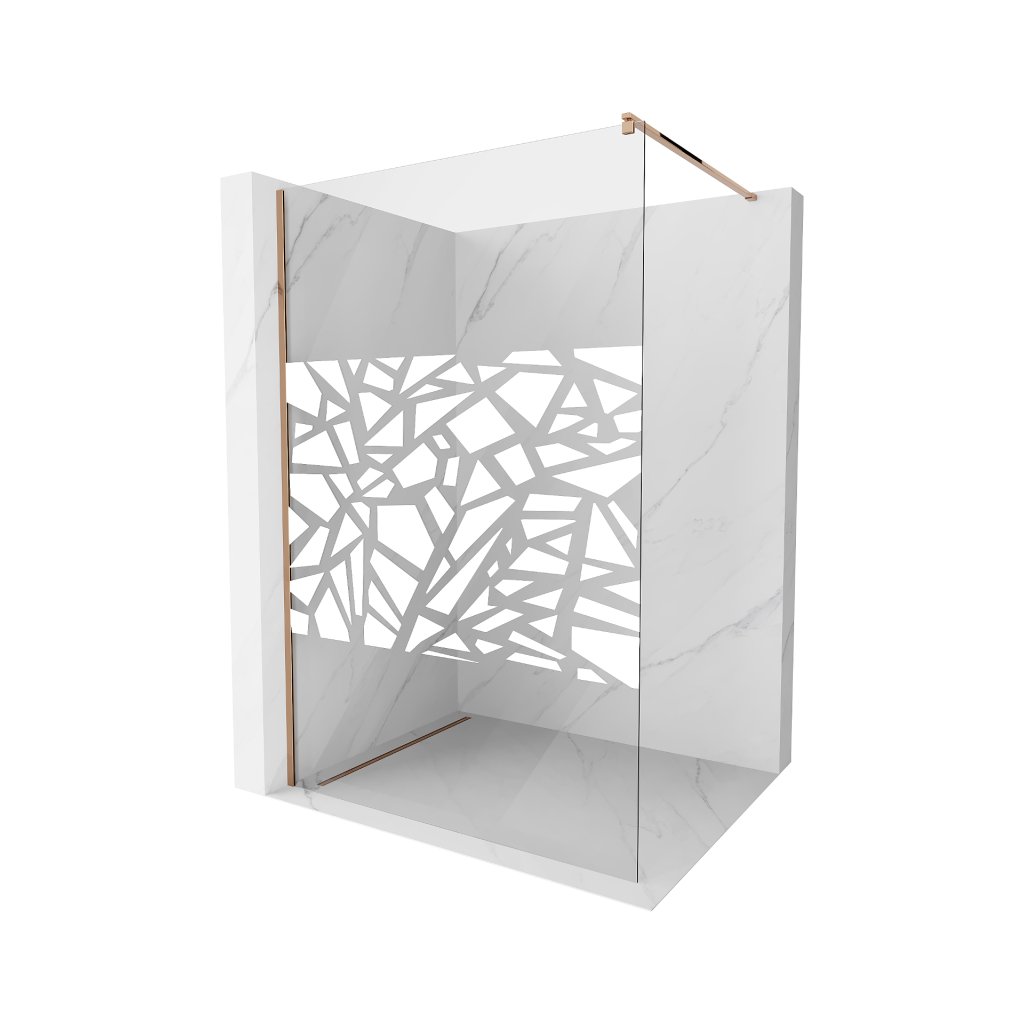 Mexen Kioto, paravan de dus 110x200 cm, sticla transparenta 8 mm cu model alb, profil auriu roz, 800-110-101-60-85