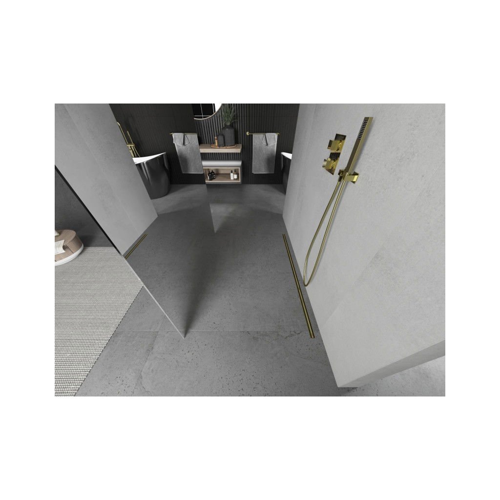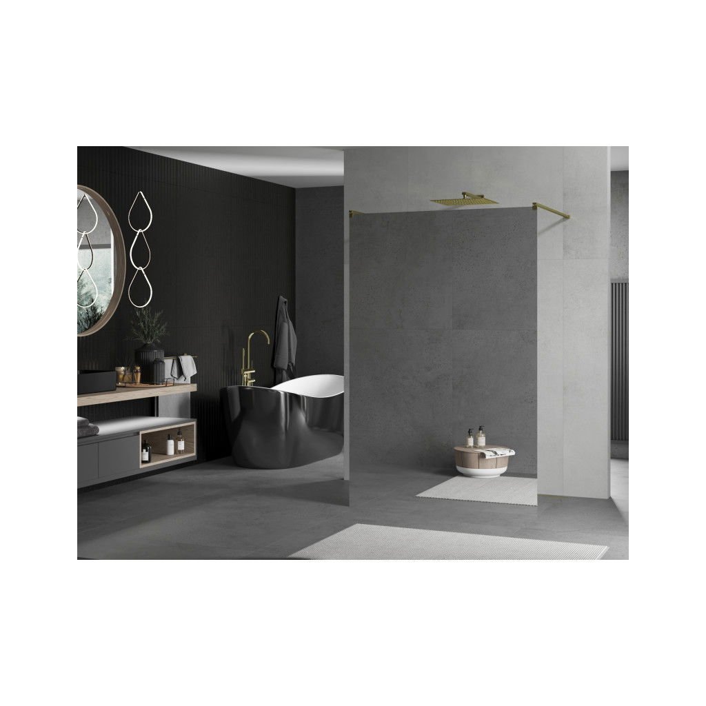 Mexen Kioto, paravan de duș 120 x 200 cm, sticlă cu oglindă de 8 mm, 2x distanțier stabilizator auriu, 800-120-002-50-50