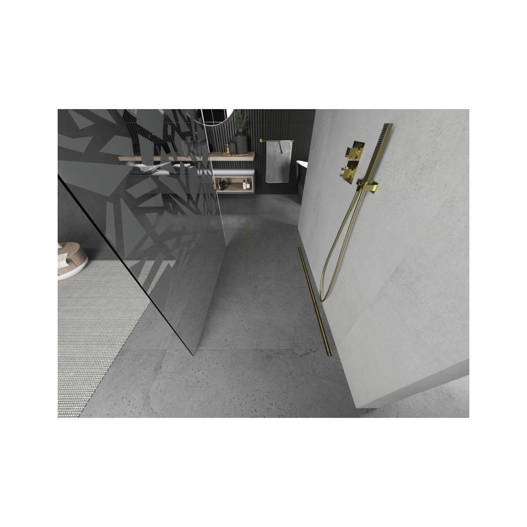 Mexen Kioto, paravan de duș 130 x 200 cm, model sticlă transparentă/alb de 8 mm, 2x distanțier stabilizator auriu, 800-130-002-50-85
