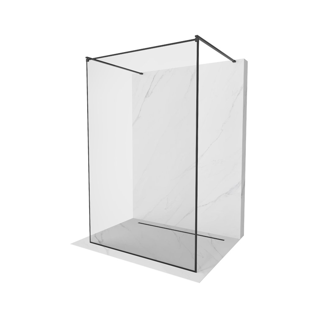 Mexen Kioto, paravan de duș 140 x 200 cm, 8 mm sticlă transparentă/model negru, 2x distanțier stabilizator negru, 800-140-002-70-70