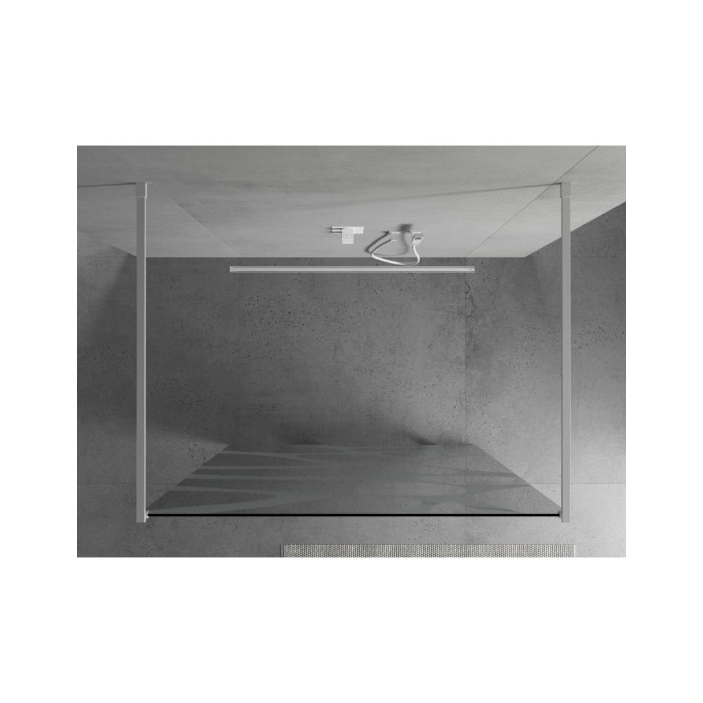 Mexen Kioto, paravan de duș 140 x 200 cm, model sticlă transparentă/alb de 8 mm, 2x distanțier stabilizator alb, 800-140-002-20-97