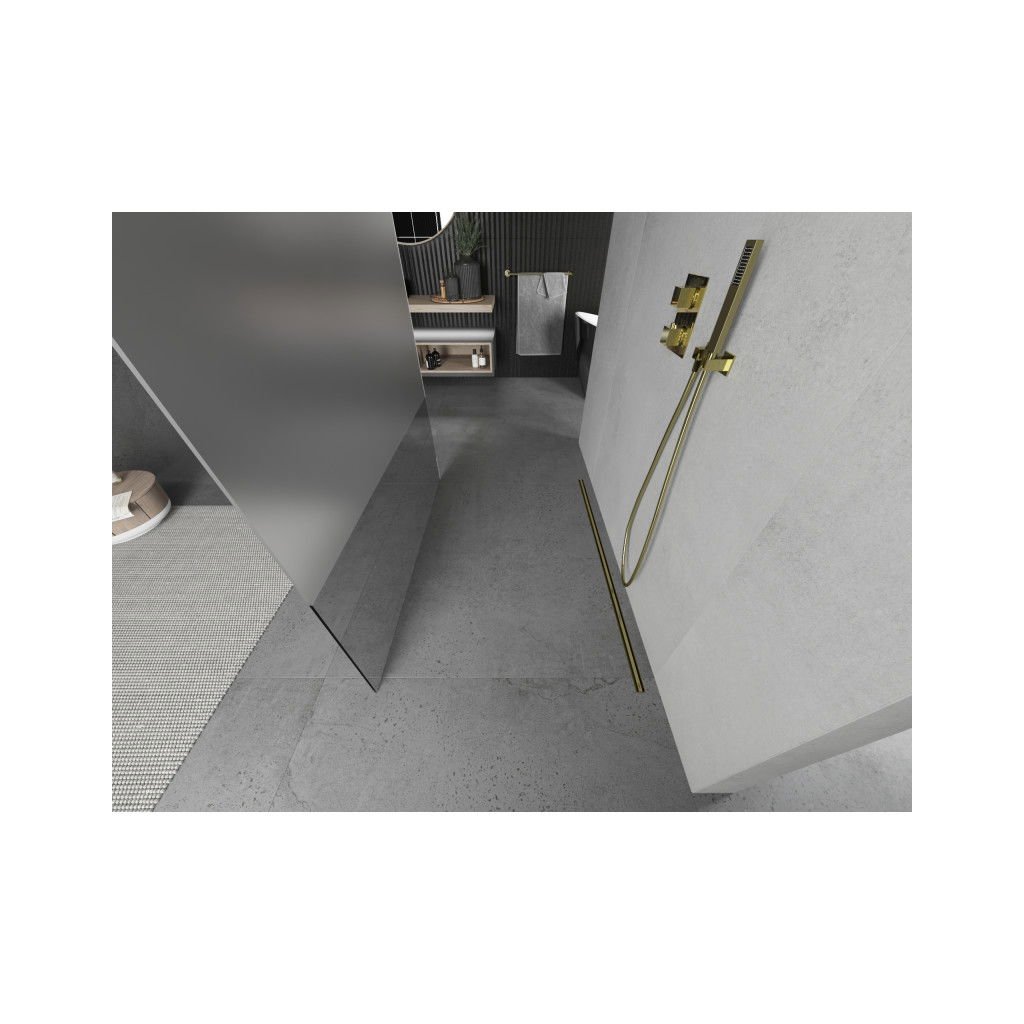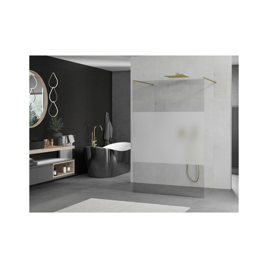 Mexen Kioto, paravan de duș 140 x 200 cm, sticlă transparentă/mat 8 mm, 2x distanțier stabilizator auriu, 800-140-002-50-35