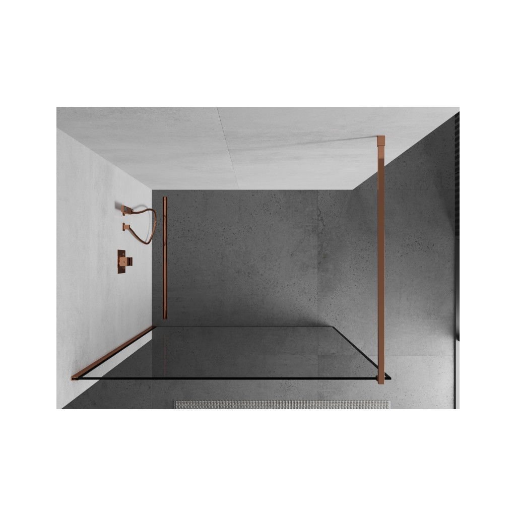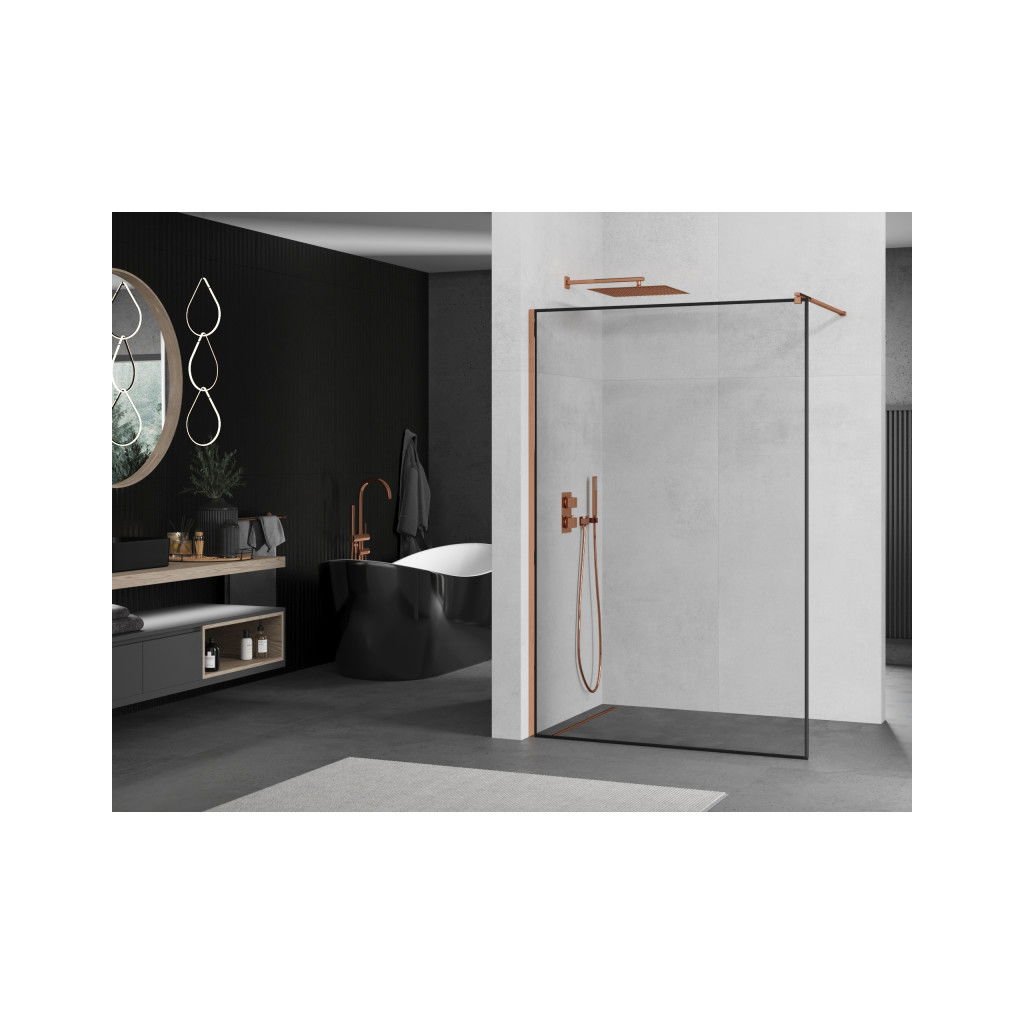 Mexen Kioto, paravan de dus 50x200 cm, sticla transparenta 8mm cu rama neagra, profil auriu roz, 800-050-101-60-70