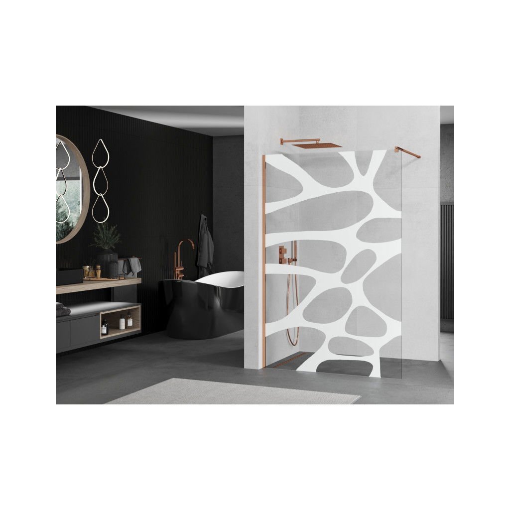 Mexen Kioto, paravan de dus 80x200 cm, sticla transparenta 8mm cu model alb, profil auriu roz, 800-080-101-60-85