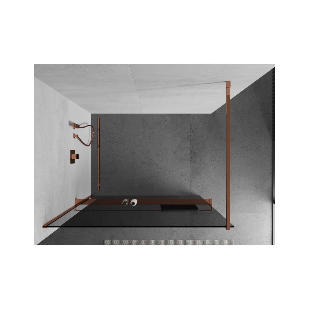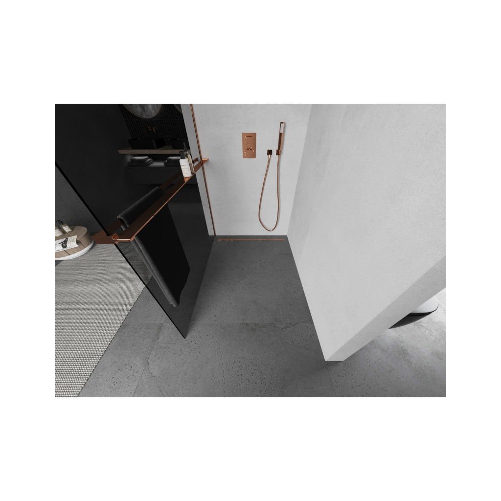 Mexen Kioto, paravan de dus cu polita si suport pentru prosoape 100 x 200 cm, sticla gri 8mm, profil auriu roz, 800-100-121-60-40