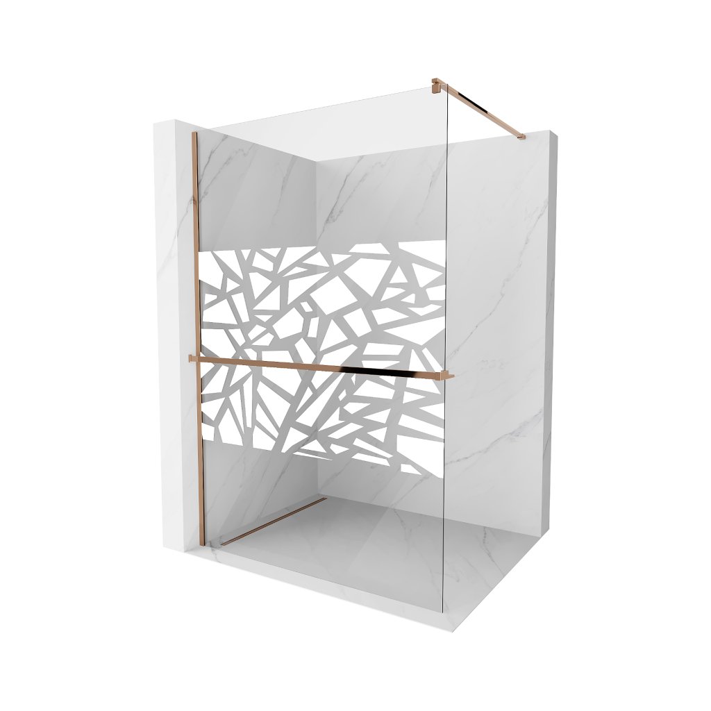 Mexen Kioto, paravan de dus cu polita si suport pentru prosoape 110 x 200 cm, sticla transparenta 8 mm cu model alb, profil auriu roz, 800-110-121-60-85
