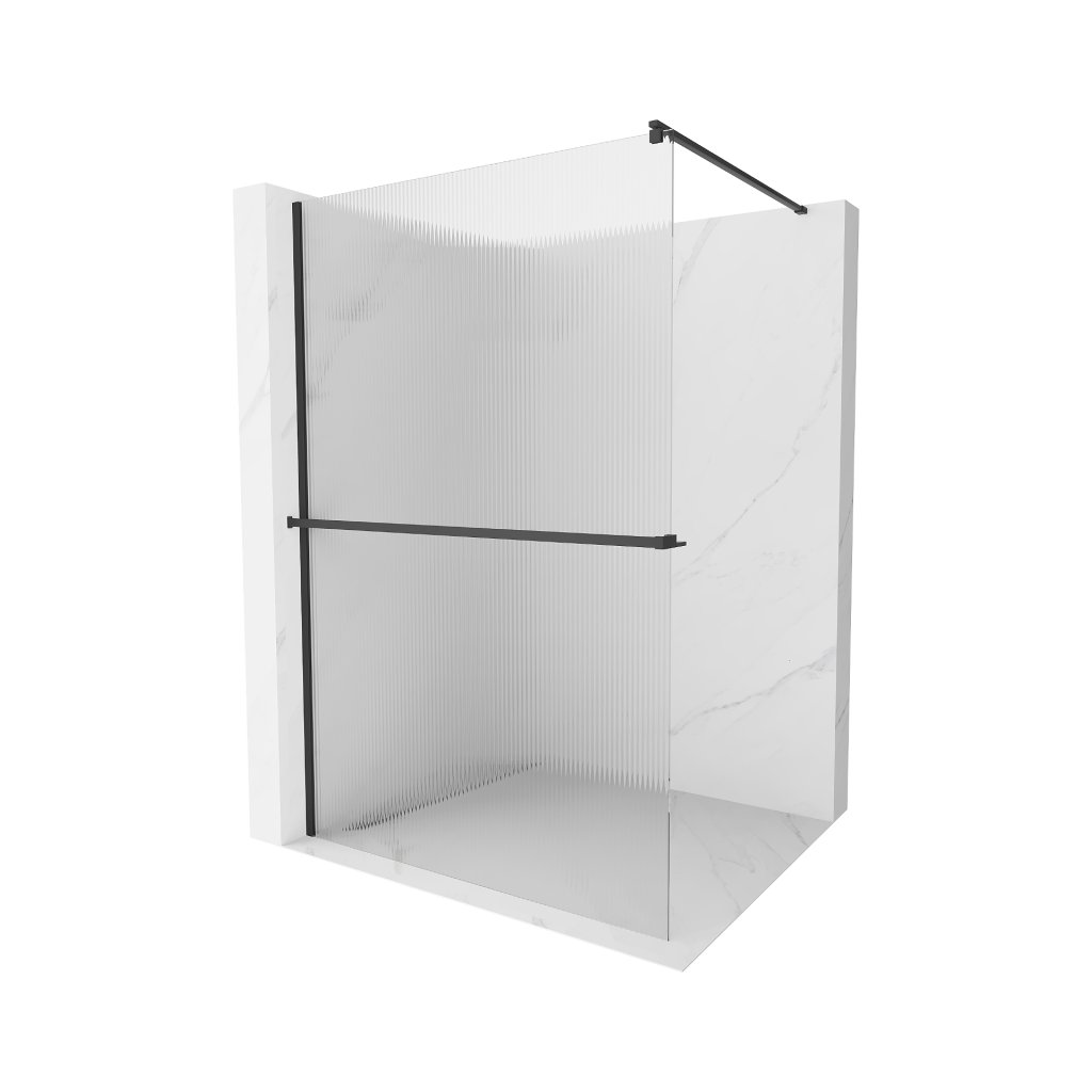 Mexen Kioto, paravan de dus cu polita si suport pentru prosoape 140 x 200 cm, sticla 8 mm cu model nervurat, profil negru, 800-140-121-70-09