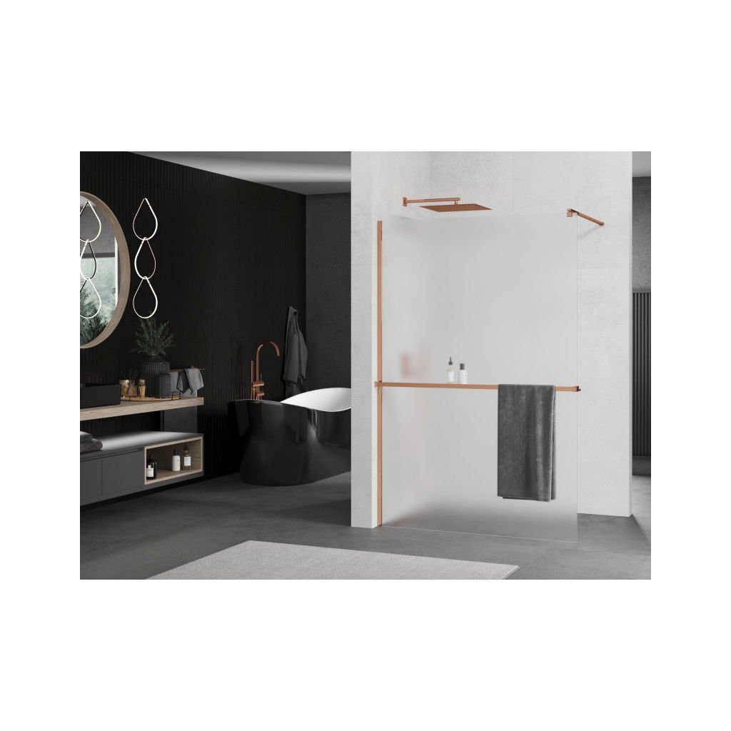 Mexen Kioto, paravan de duș cu poliță și suport pentru prosoape 70 x 200 cm, sticlă mată 8 mm, profil auriu roz, 800-070-121-60-30