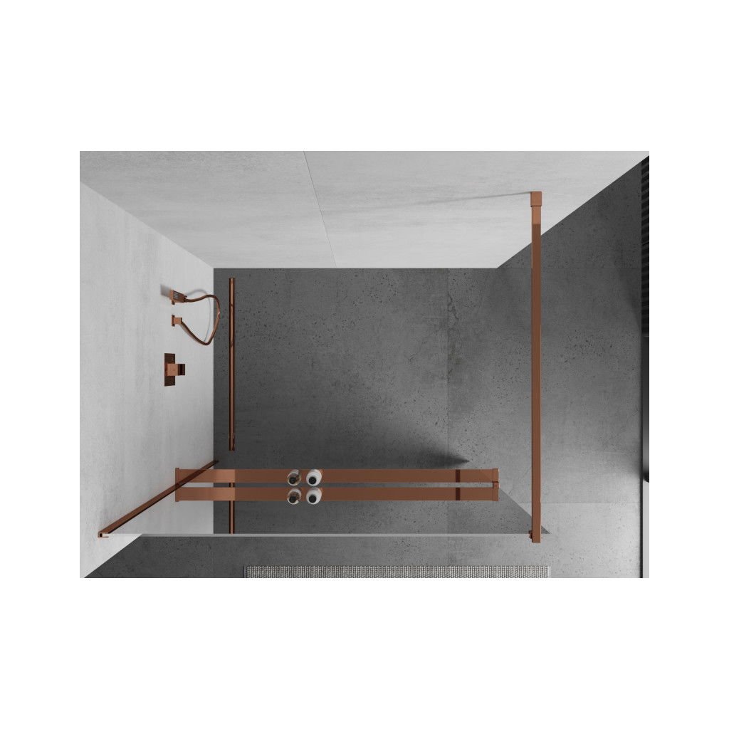 Mexen Kioto, paravan de dus cu polita si suport pentru prosoape 80 x 200 cm, sticla 8 mm cu efect de oglinda, profil auriu roz, 800-080-121-60-50