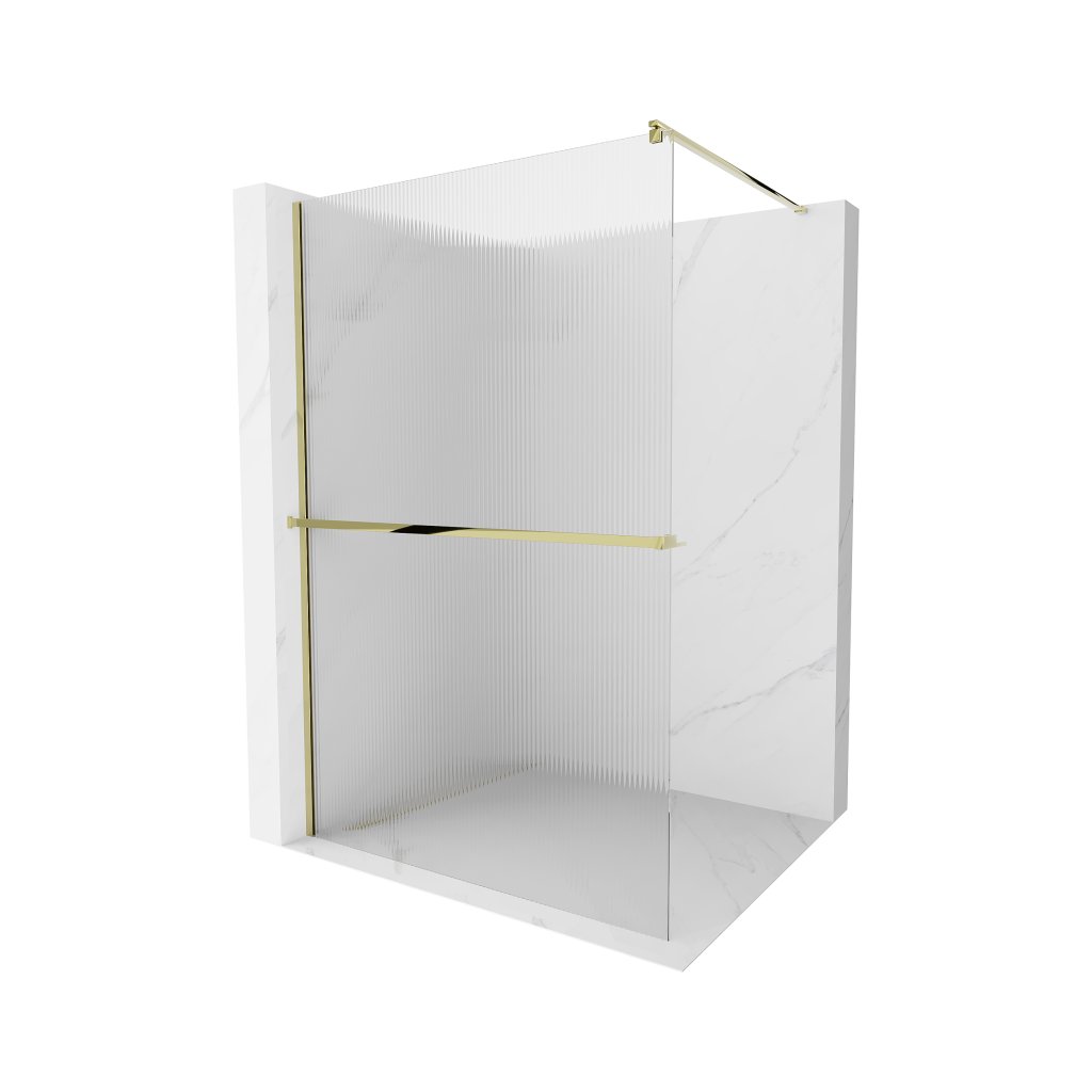 Mexen Kioto, paravan de dus cu raft si suport pentru prosoape 80 x 200 cm, sticla 8 mm cu model nervurat, profil auriu, 800-080-121-50-09