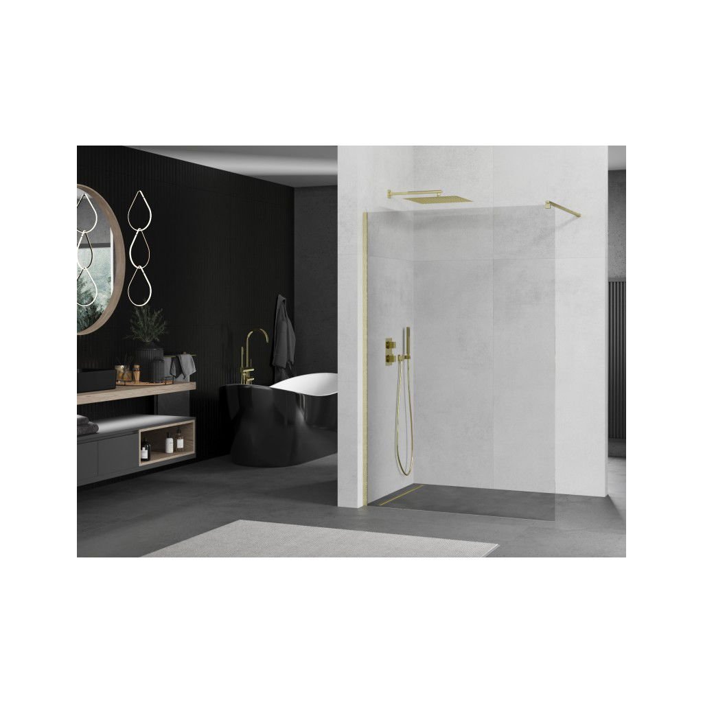 Mexen Kioto, paravan de dus tip Walk-In 100 x 200 cm, sticla transparenta 8 mm, profil auriu mat, 800-100-101-55-00