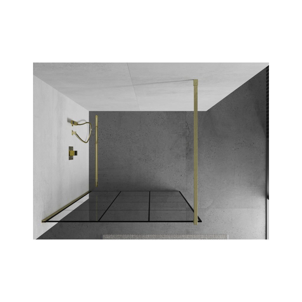 Mexen Kioto, paravan de duș walk-in 100 x 200 cm, 8 mm model negru din sticlă transparentă, profil auriu mat, 800-100-101-55-77