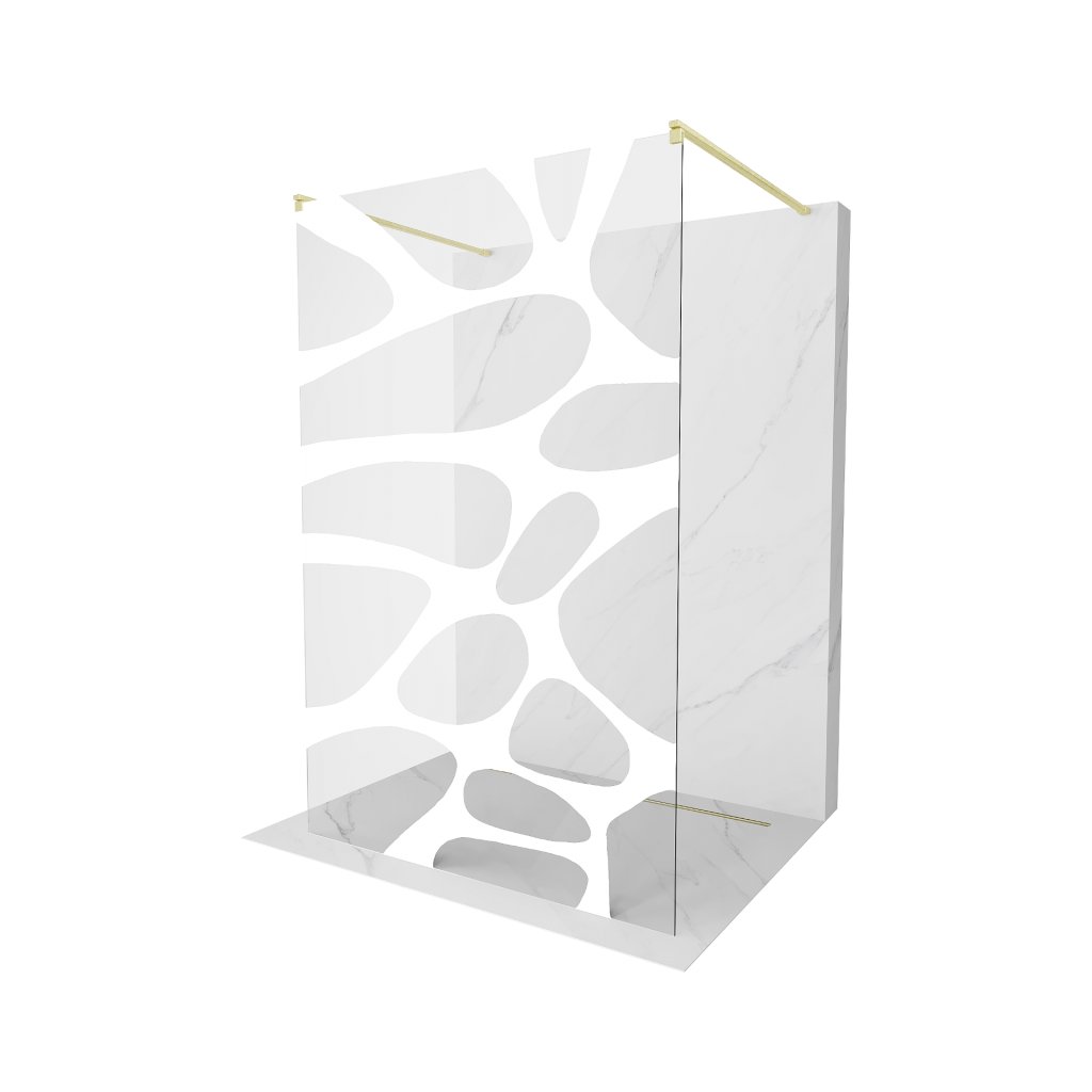 Mexen Kioto, paravan de dus walk-in 100 x 200 cm, 8 mm sticla transparenta model alb, profil auriu mat, 800-100-002-55-97