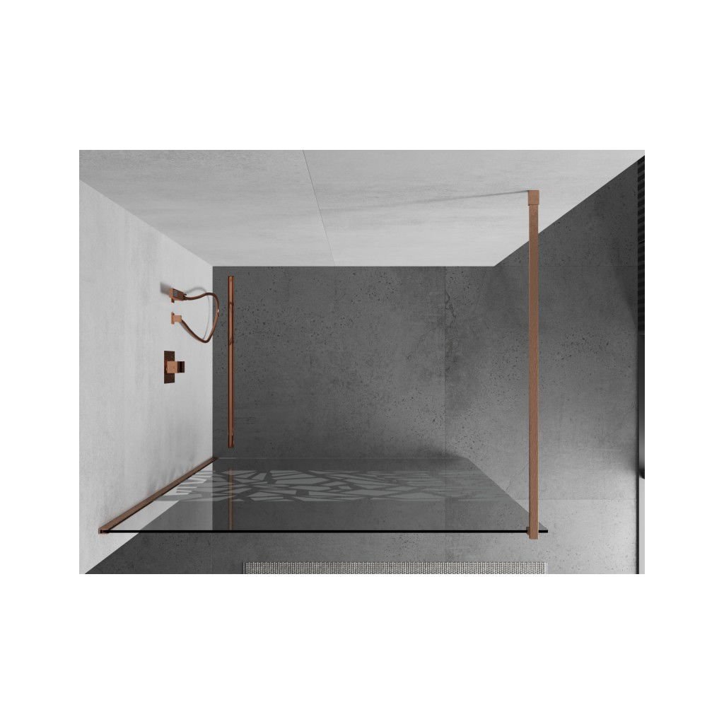 Mexen Kioto, paravan de dus walk-in 100 x 200 cm, 8 mm sticla transparenta model alb, profil cupru mat, 800-100-101-65-85