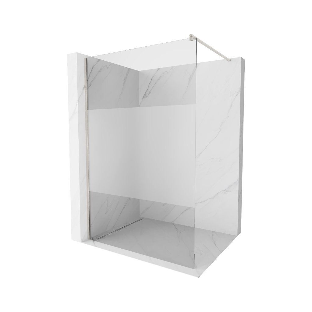 Mexen Kioto, paravan de dus walk-in 100 x 200 cm, sticla transparenta 8 mm, profil din otel periat, 800-100-101-97-35