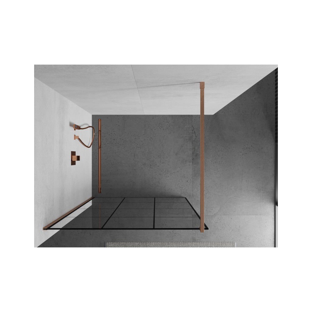 Mexen Kioto, paravan de dus walk-in 110 x 200 cm, 8 mm sticla transparenta model negru, profil cupru mat, 800-110-101-65-77