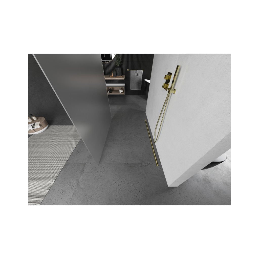 Mexen Kioto, Paravan de duș Walk-In 110 x 200 cm, sticlă mată 8 mm, profil auriu mat, 800-110-002-55-30