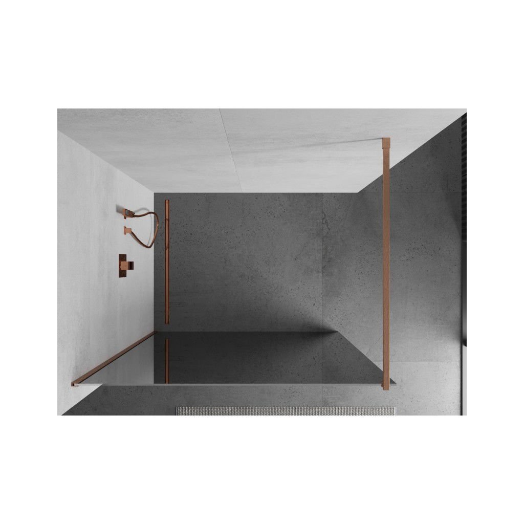 Mexen Kioto, paravan de dus walk-in 110 x 200 cm, sticla model oglinda de 8 mm, profil cupru mat, 800-110-101-65-50