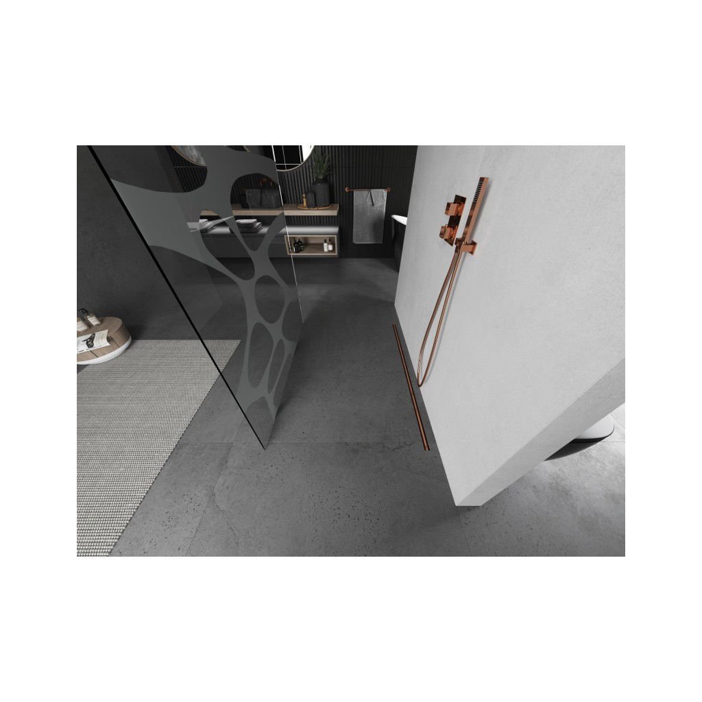 Mexen Kioto, paravan de dus walk-in 120 x 200 cm, 8 mm sticla transparenta model alb, profil cupru mat, 800-120-002-65-97