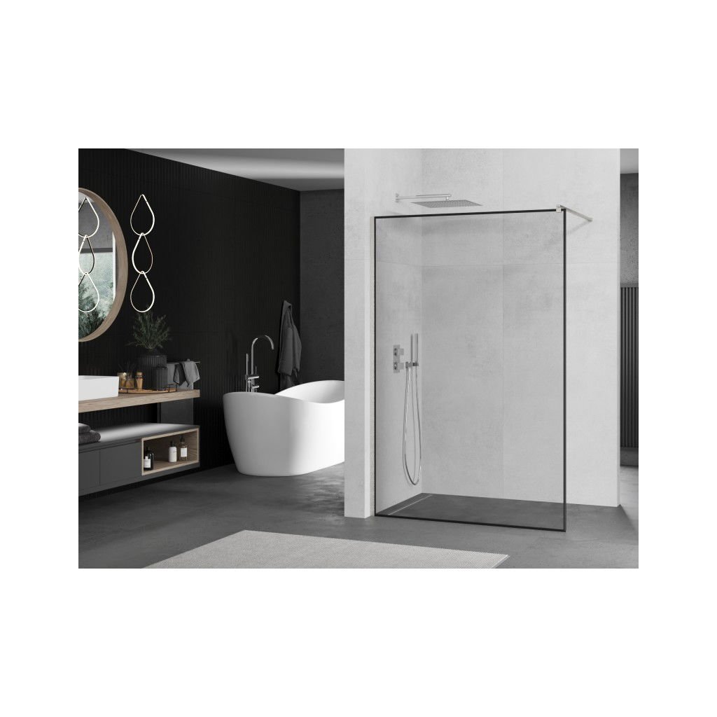 Mexen Kioto, paravan de dus walk-in 120 x 200 cm, 8 mm sticla transparenta model negru, profil din otel periat, 800-120-101-97-70