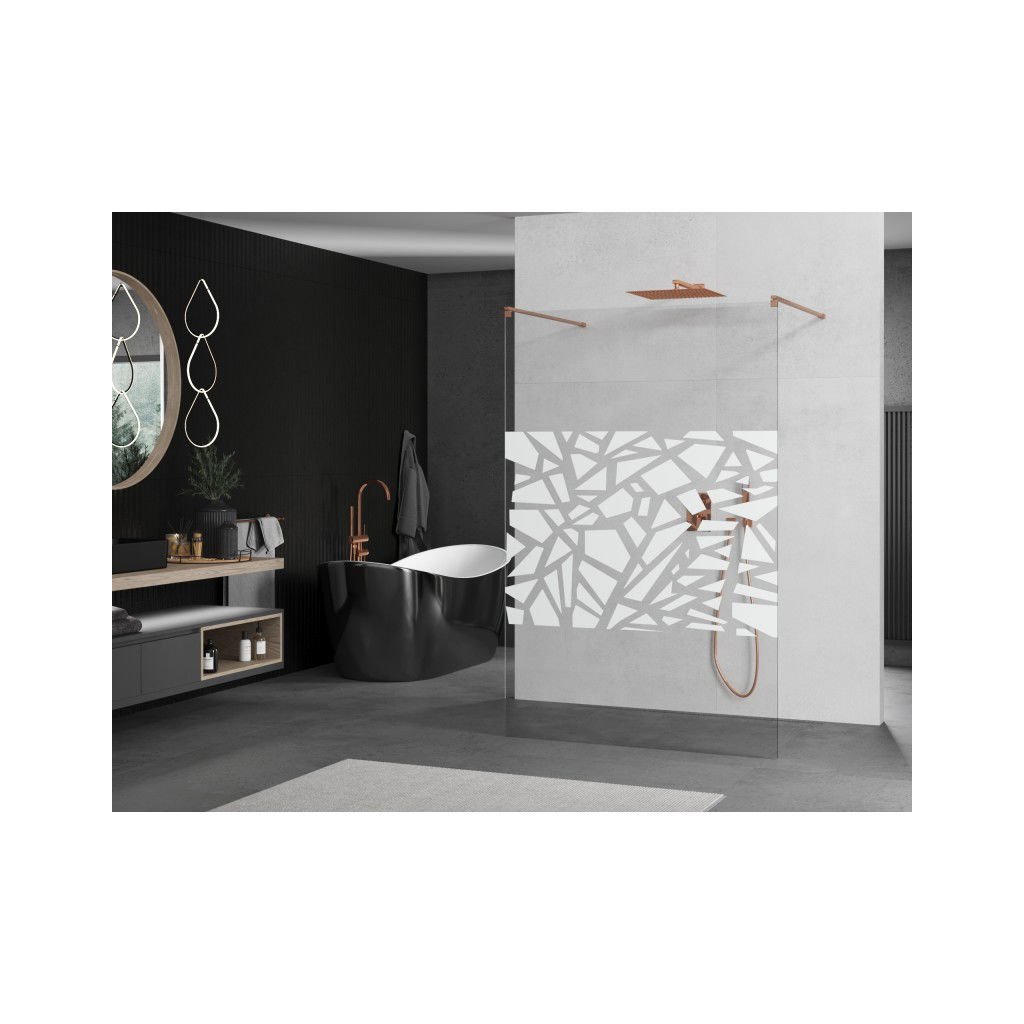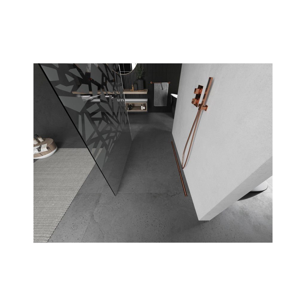 Mexen Kioto, Paravan de duș Walk-In 130 x 200 cm, 8 mm model alb din sticlă transparentă, profil cupru mat, 800-130-002-65-85