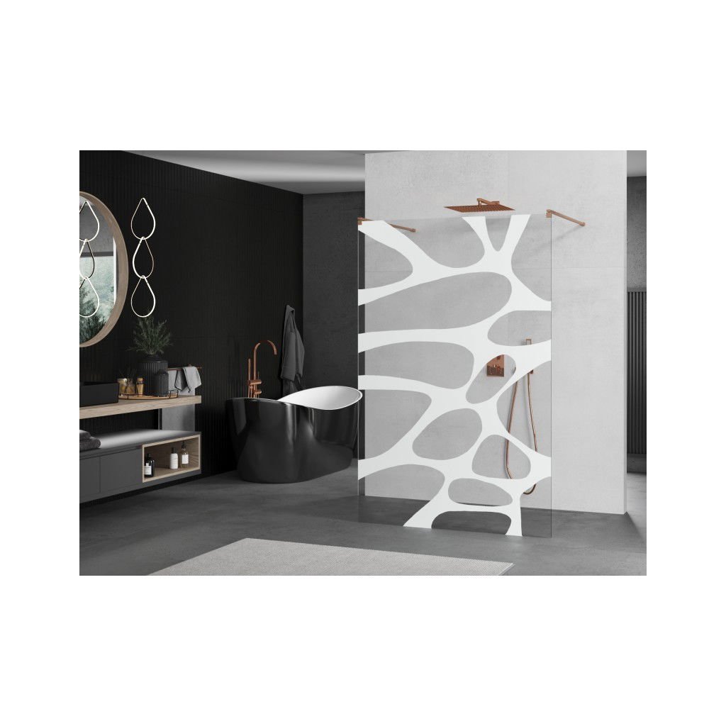 Mexen Kioto, paravan de dus walk-in 130 x 200 cm, 8 mm sticla transparenta model alb, profil cupru mat, 800-130-002-65-97