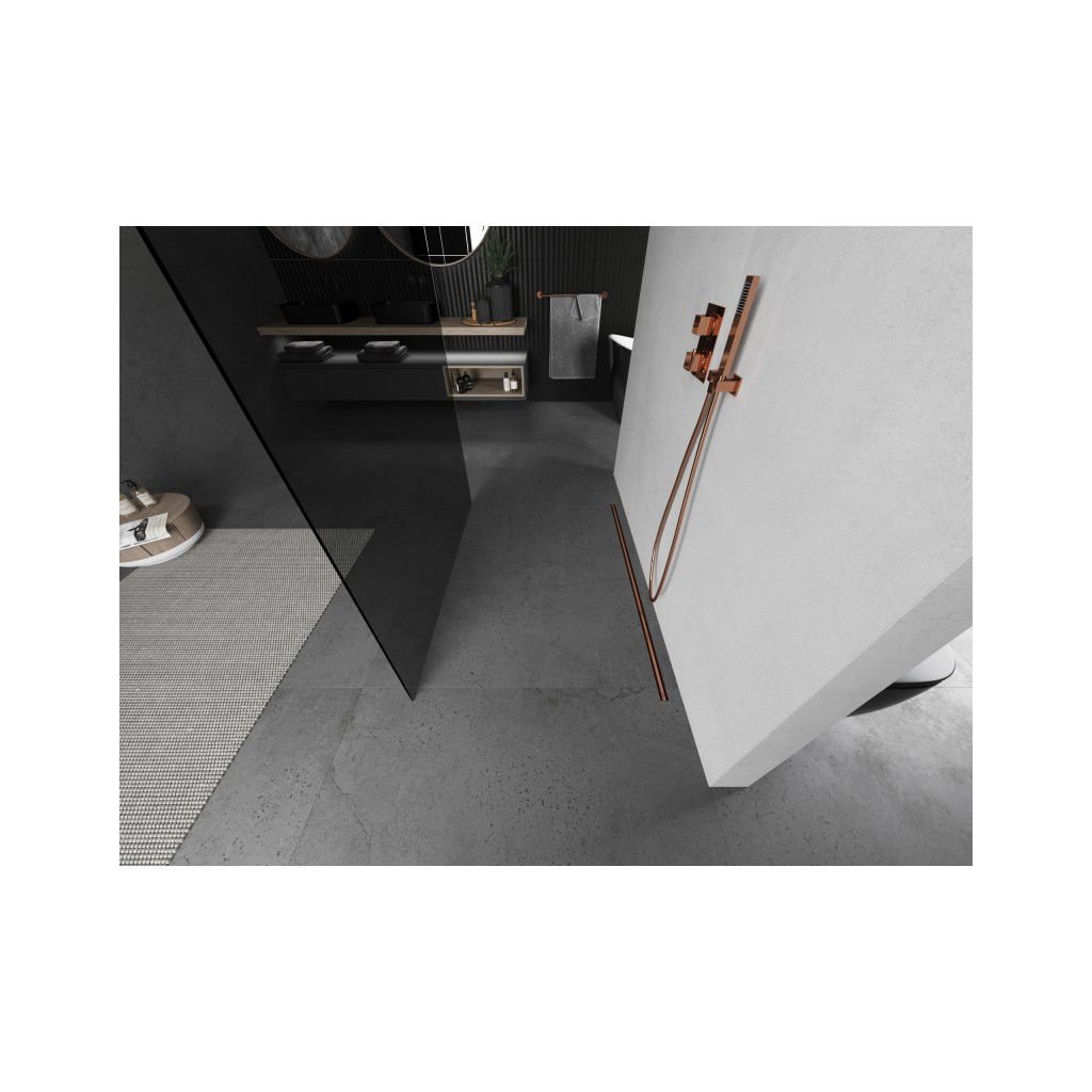 Mexen Kioto, paravan de dus walk-in 130 x 200 cm, sticla gri 8mm, profil cupru mat, 800-130-002-65-40