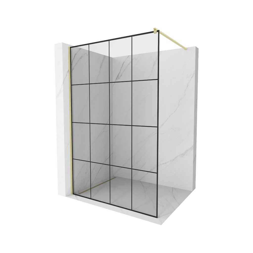 Mexen Kioto, paravan de dus walk-in 140 x 200 cm, 8 mm sticla transparenta model negru, profil auriu mat, 800-140-101-55-77