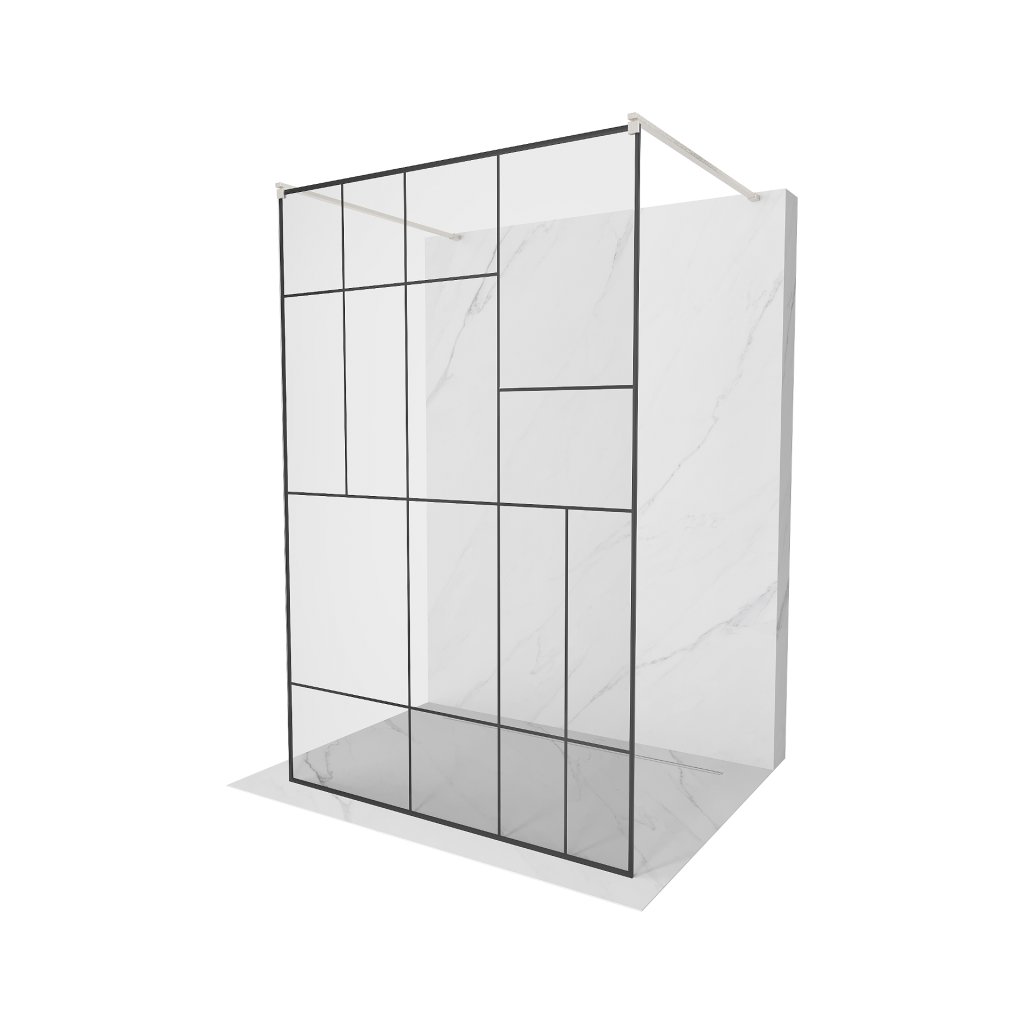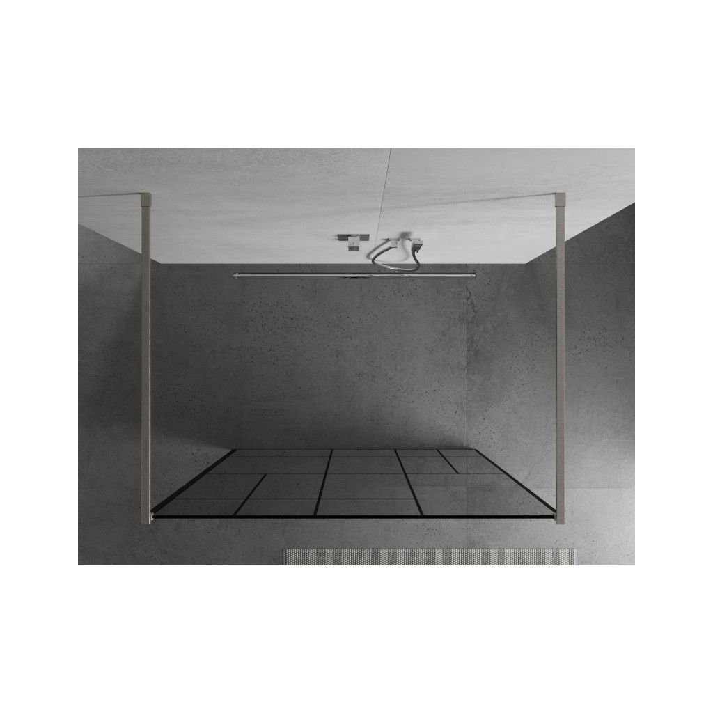 Mexen Kioto, Paravan de duș Walk-In 140 x 200 cm, model sticlă 8 mm negru, profil din oțel periat, 800-140-002-97-78