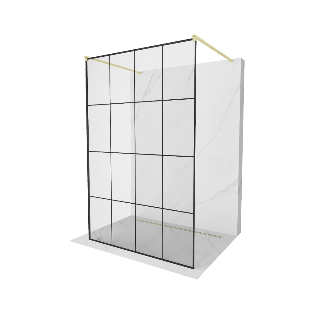 Mexen Kioto, paravan de duș walk-in 140 x 200 cm, model sticlă de 8 mm negru, profil auriu mat, 800-140-002-55-77