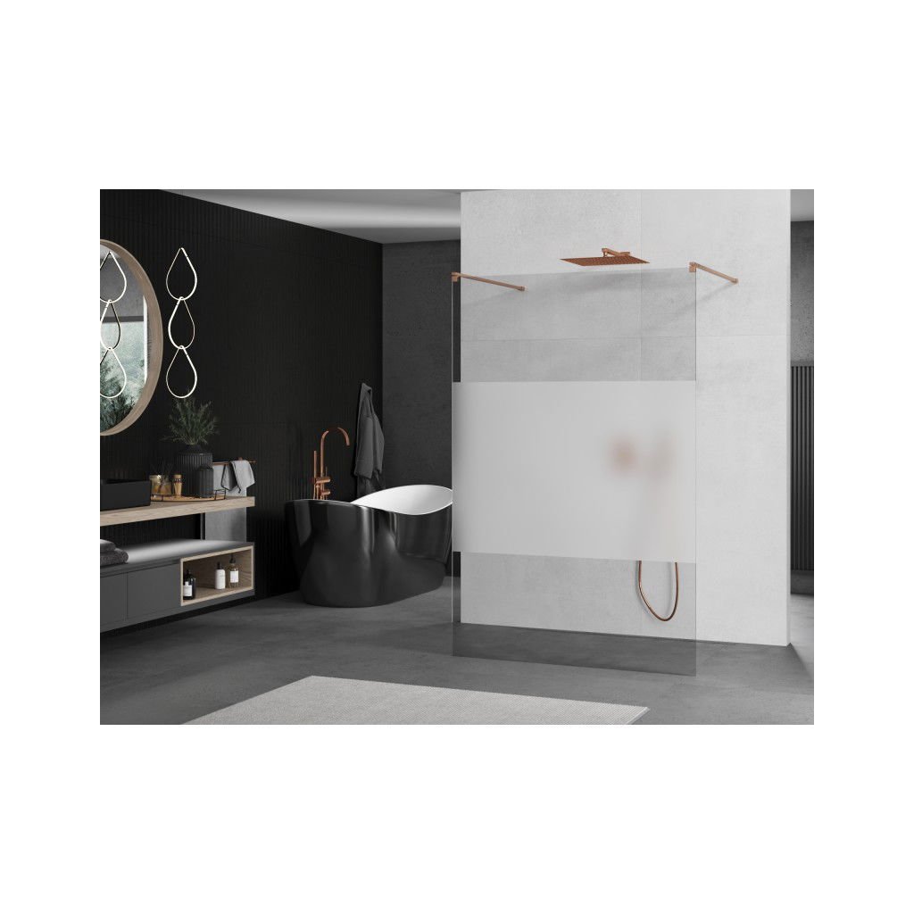 Mexen Kioto, Paravan de duș Walk-In 140 x 200 cm, sticlă mată transparentă de 8 mm, profil cupru mat, 800-140-002-65-35
