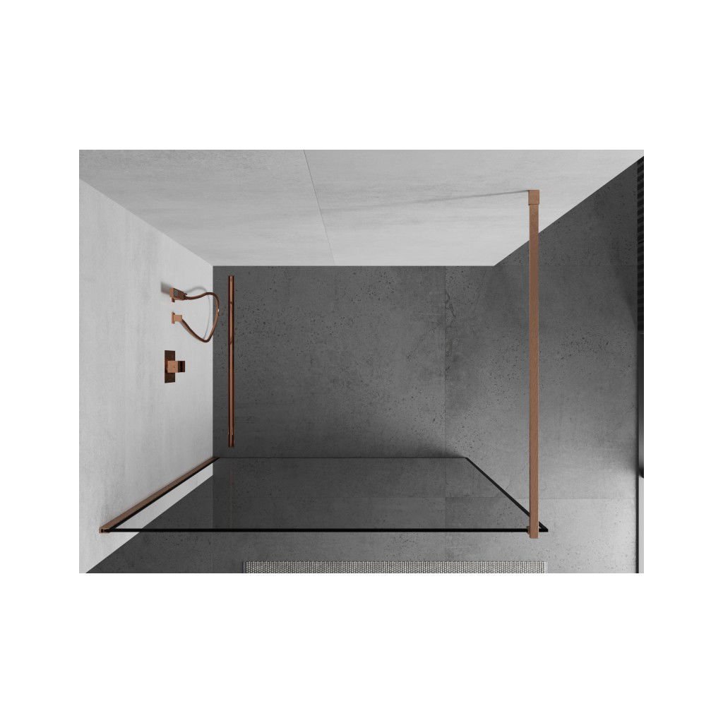 Mexen Kioto, paravan de duș walk-in 50 x 200 cm, 8 mm model negru din sticlă transparentă, profil cupru mat, 800-050-101-65-70