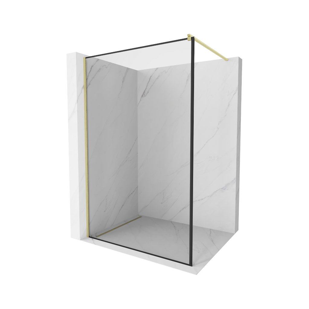 Mexen Kioto, paravan de dus walk-in 70 x 200 cm, 8 mm sticla transparenta model negru, profil auriu mat, 800-070-101-55-70