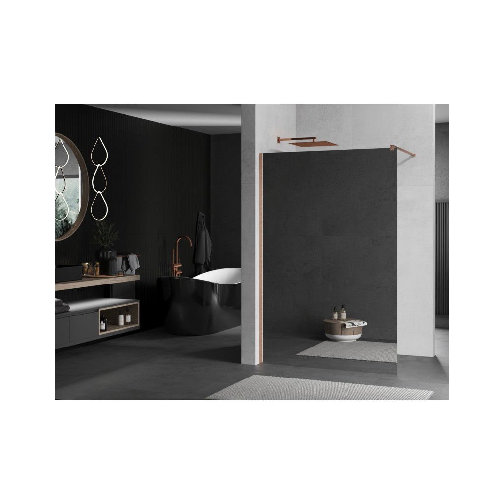 Mexen Kioto, paravan de dus walk-in 80 x 200 cm, sticla model oglinda de 8 mm, profil cupru mat, 800-080-101-65-50
