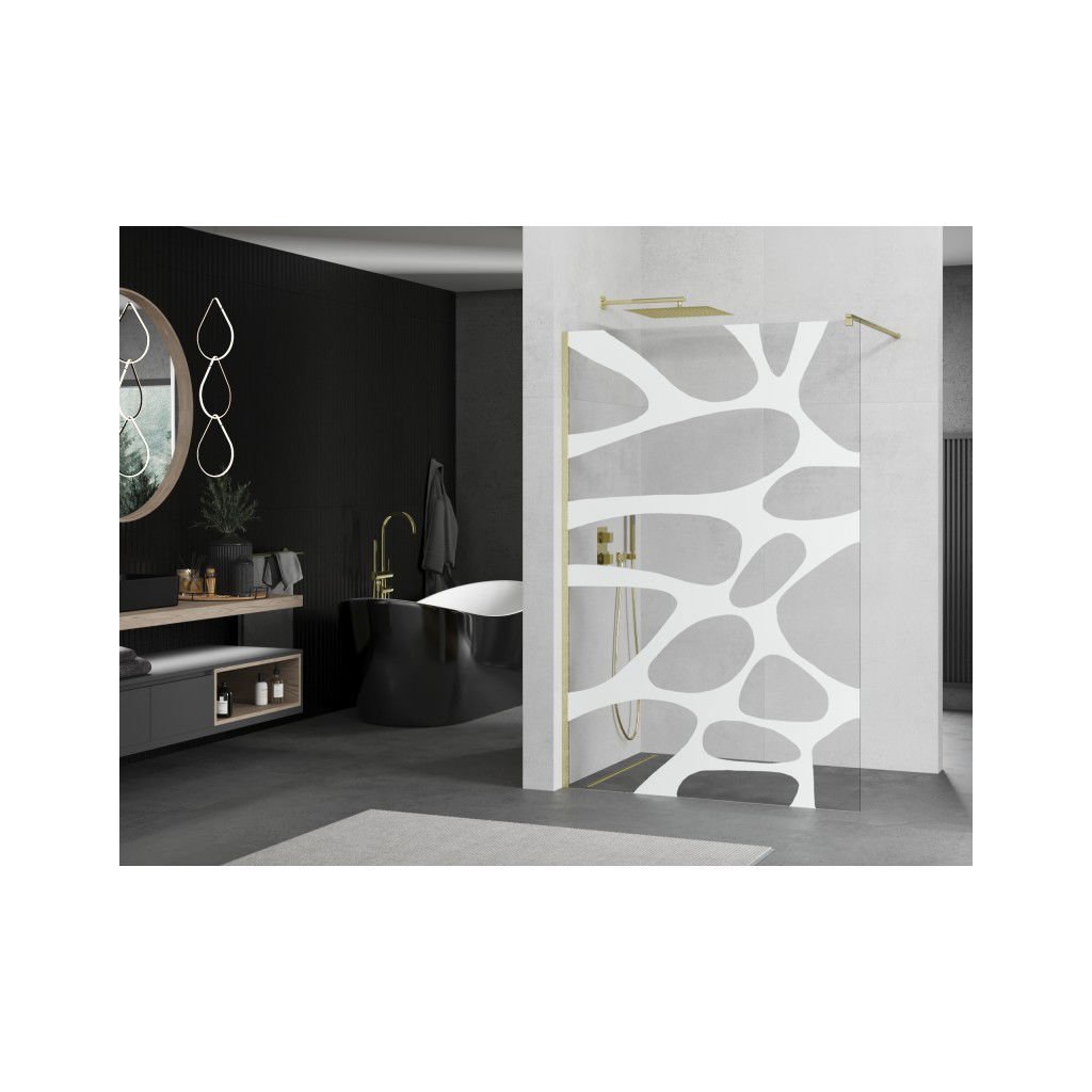 Mexen Kioto, paravan de dus walk-in 90 x 200 cm, 8 mm sticla transparenta model alb, profil auriu mat, 800-090-101-55-97