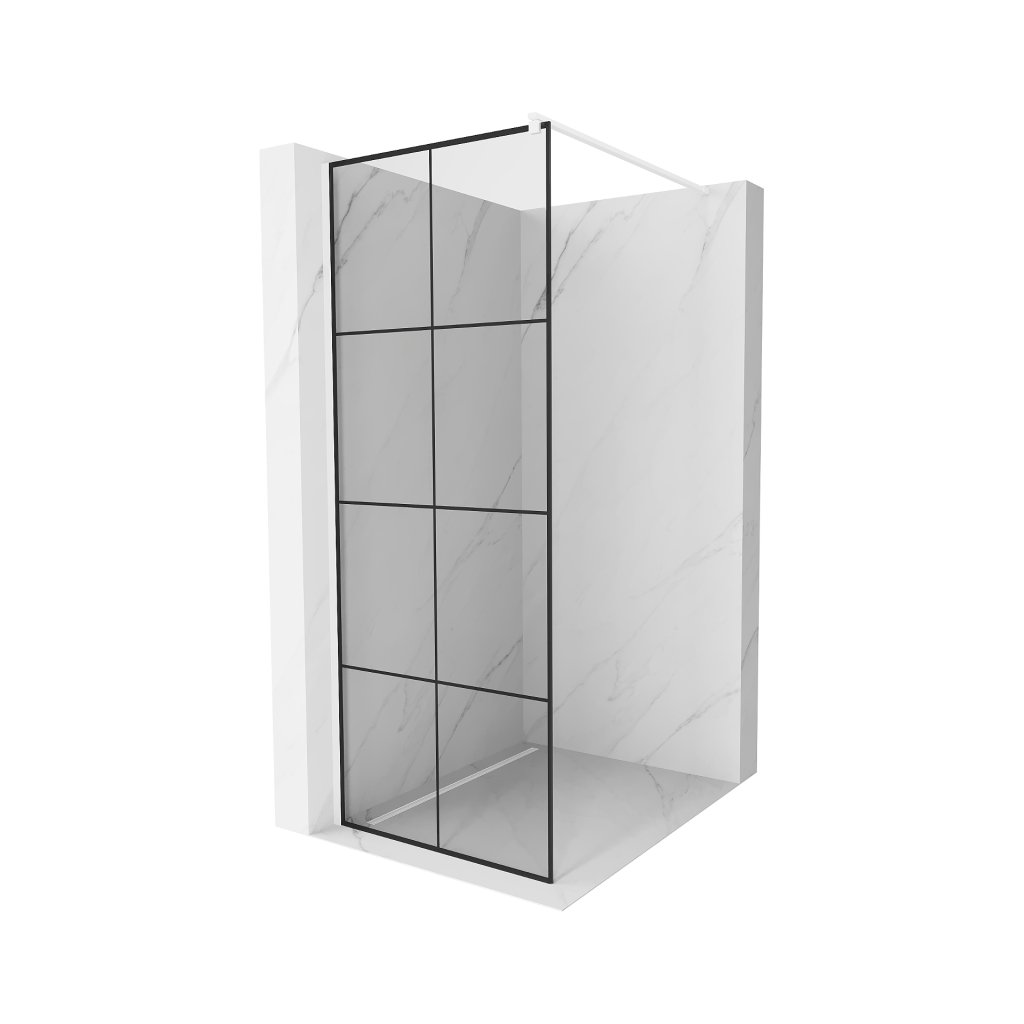 Mexen Kioto, paravan de dus walk-in 90 x 200 cm, 8 mm sticla transparenta/negru model, profil alb, 800-090-101-20-77