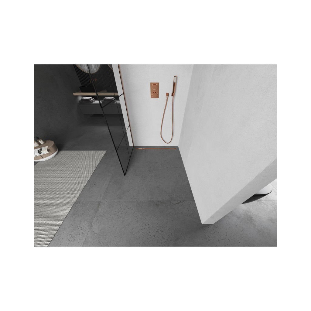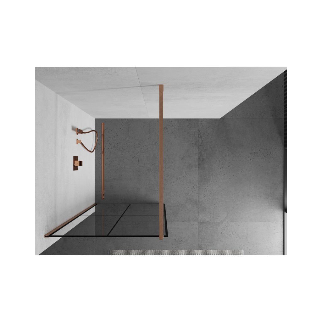 Mexen Kioto, paravan de duș walk-in 90 x 200 cm, sticlă transparentă 8 mm model negru, profil cupru mat, 800-090-101-65-77